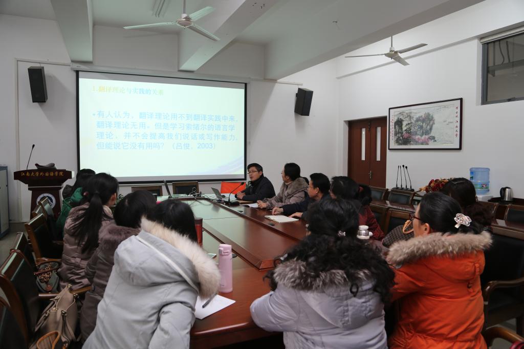 “卓越课堂”翻译模块互动式系列讲座第二场在拓展部翻译组教师们的期盼中于2016年1月12日下午在水果派