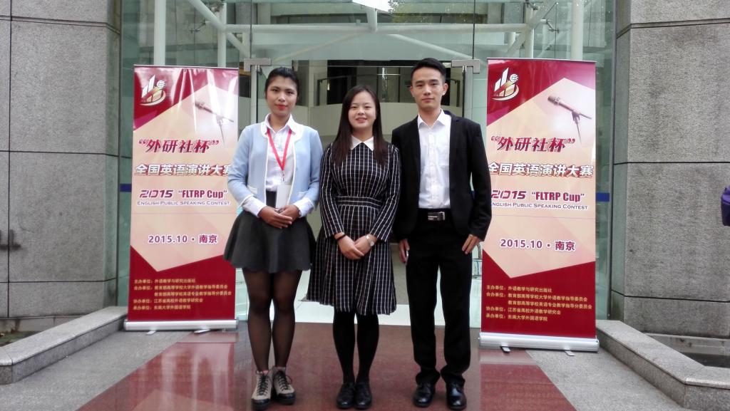 2015年“外研社杯”全国英语演讲大赛江苏赛区决赛于10月31日-11月1日在东南大学举行,来自全省高校150多名选手及百余位指导教师参加了比赛。外语学院叶挺、潘梦婷、食品学院黎蕾蕾同学在比赛中凭借出色的表现,分别获二等奖和三等奖的好成绩。严敏芬教授和钱薇薇老师带队参赛,分别获得优秀指导教师荣誉称号。
