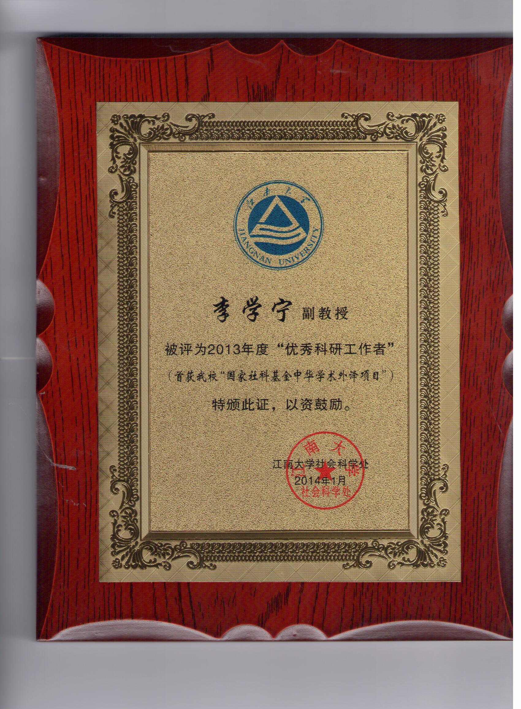 从刚刚召开的水果派 科研工作会议上获悉,水果派李学宁副教授被学校评为2013年度“科研优秀工作者”,其研究项目“爱与思——生活儒学的观念”—首获水果派 “国际社科基金中华学术外译项目”。