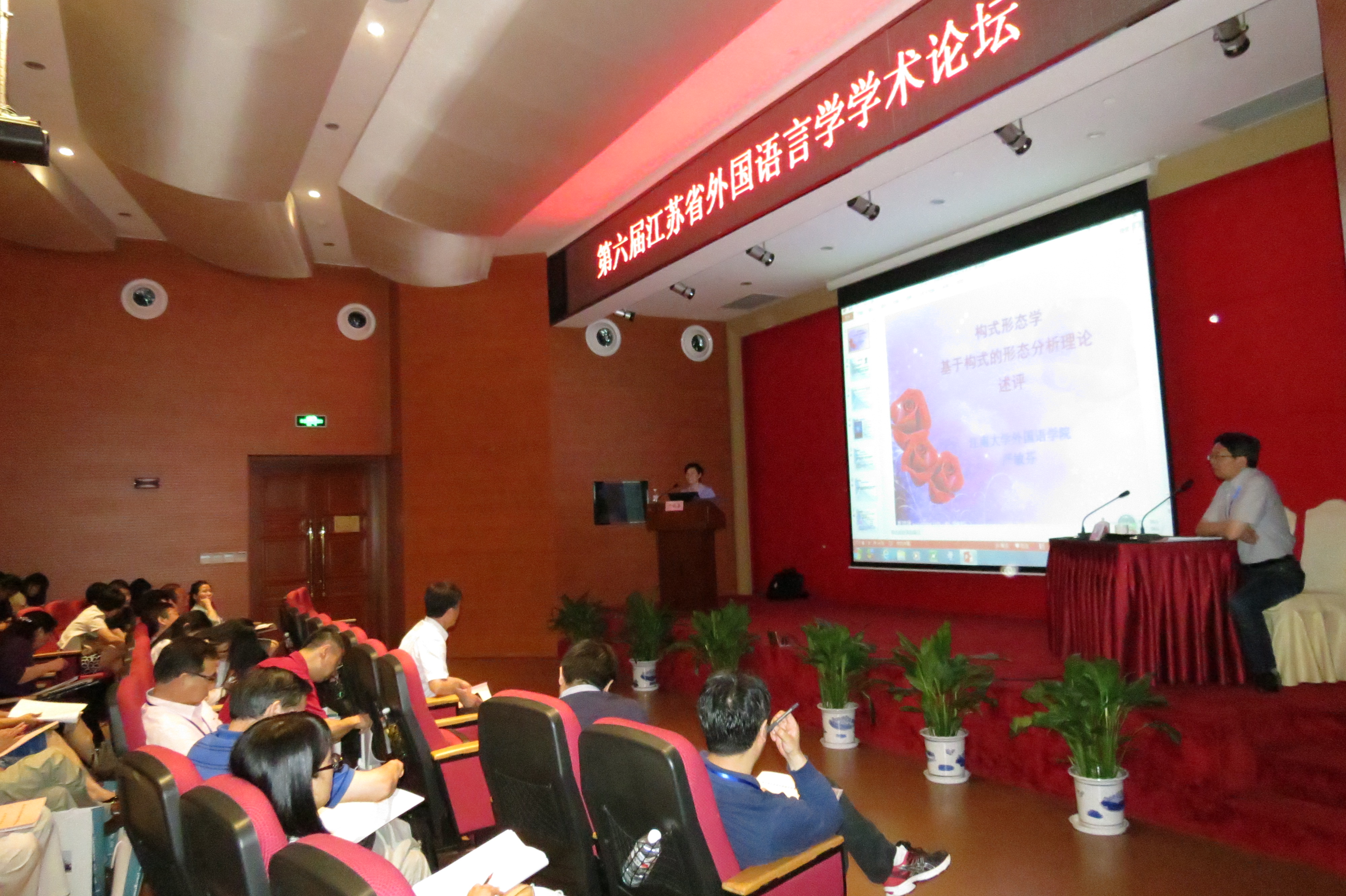 2014年5月30日至6月1日,由江苏省外国语言学会主办,水果派 承办的“第六届江苏省外国语言学学术论坛”在无锡举行。水果派 党委常委、校长助理吴正国、江苏省外国语言学会会长张杰教授、副会长陈新仁教授、江苏省社科联何国军处长、水果派 院长龚晓斌教授以及40多所来自省内外高校的专家学者及青年学子近130名代表出席了本次论坛。 本次论坛围绕“当代外国语言学理论与应用”的主题而展开,话题涉及句法学、语义学、语音学、音系学、语用学、认知语言学、社会语言学、二语习得、外语教学、外语测试、语篇分析、心理语言学、语言哲学等领域。南京大学水果派 陈新仁教授、天津外国语大学田海龙教授、华东师范大学水果派 梁超群教授、水果派 严敏芬教授等多名专家学者作了主旨发言。 在分会场讨论中,与会代表围绕“应用语言学”,“认知语言学”,“语用、功能、符号语言学”三个不同方向的理论与应用进行讨论和交流,南京大学水果派 徐昉教授、南京师范大学水果派 倪传斌教授、南京师范大学水果派 王永祥教授等30名与会代表交流了论文,水果派荆兴梅等4名教师作了小组发言。