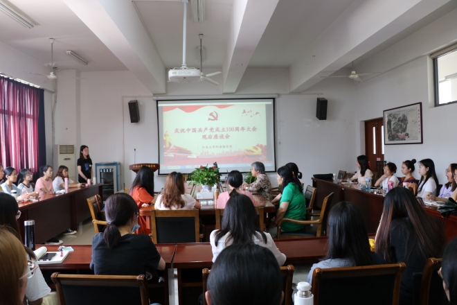 大会观看结束后,大家情绪激昂,纷纷发表了自己的感想。鲍国庆老师说,看到祖国的繁荣昌盛,自己由衷的喜悦与自豪。中国共产党从一开始只有50多名党员的组织发展成如今拥有9500多万名党员的庞大队伍始终没有忘记自己的初心和使命,也印证了习近平总书记在讲话中提到的“江山就是人民,人民就是江山”。她亲眼见证了国家在共产党的领导下从以前的物资贫乏到如今的全面小康,人民的生活越来越有满足感。作为一名党员,她会继续听党话,跟党走,为党的建设和国家发展付出自己的一份努力。同时她也激励在座的青年党员接下第二个百年奋斗目标的接力棒,贡献自己的力量。郭锡华老师也强调了青年共产党员是未来发展的主力军,必须发挥先锋模范作用,牢记初心,承担使命。吴艳敏老师总结了前两位老师的发言,她说学生党员们生在了最好的时代,应努力发挥青年人的力量,攻坚克难。最后,学生代表张如心、赵毅、戴圆方、余丽丽、邹卫娟也谈了谈自己的感想,他们从神舟十二号的成功发射、《觉醒年代》、《理想照耀中国》等热播献礼剧中传达的思想等谈起,表明了自己以实现中华民族伟大复兴为己任的决心和毅力。
