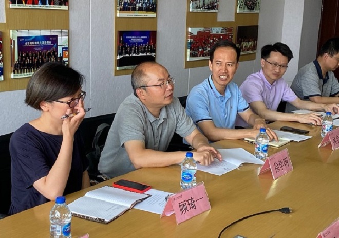 徐学明处长表示感谢并表明了此行的目的。杨颉处长在会谈中肯定了公共基础课程的重要性并介绍了上海交通大学基础课教学面临的主要问题和质量提升的重要举措,教务处黄丹副处长以及其他教务系统的老师进一步补充了相关细节。交大的先修/助力营制度、灵活短学期制度、大学英语水平考试制度等令人印象深刻。