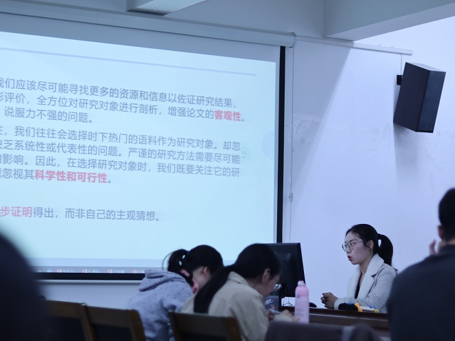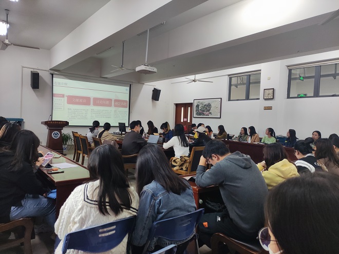 “研途奋进”第四期活动在文科楼A349举行,本次活动主题为“2021年江苏省外国语言文学研究生学术创新论坛”参会暨观看心得分享,水果派谢竞贤副院长全程观摩了本次活动。2020级、2021级全体硕士研究生出席了本次活动。