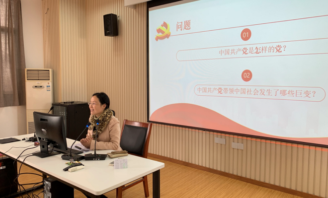 首先,谢院长指出,重温党史、学习党史有特别重要的意义。学史明理、学史增信、学史崇德、学史力行是每一位党员老师的必修课。谢院长首先提出了两个思考题:第一、中国共产党是怎样的党?第二、中国共产党带领中国社会发生了哪些巨变?在随后的讲课中,她指出中国共产党是敢于修正错误的党,其高贵品质是勇于理论创新,始终保持政治本色,并在发展与壮大中不断完善自己的组织体系,提升舆论宣传能力,坚持正风肃纪、刮骨疗毒。关于党给中国社会带来的六大变化,谢院长带领全体老师进行了回顾,即从旧中国之乱到新中国之治,从一穷二白到基本完成工业化,从经济凋敝到经济高增长、高质量发展,从绝对贫困到全面建成小康社会,从一盘散沙到集体主义凝聚力的形成,从民族悲观论到民族自豪感的深刻变化。