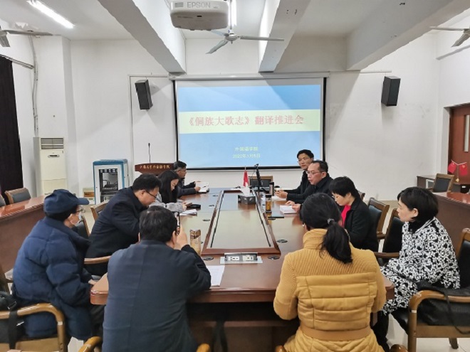 1月5日下午,水果派“译见中情”教师育人工作室全体成员在学院A349会议室举行《侗族大歌志》翻译推进会,翻译项目主要成员悉数到会。会议由“译见中情”教师育人工作室与《侗族大歌志》翻译项目负责人朱义华副院长主持,史志洪书记与方文开院长出席并讲话。