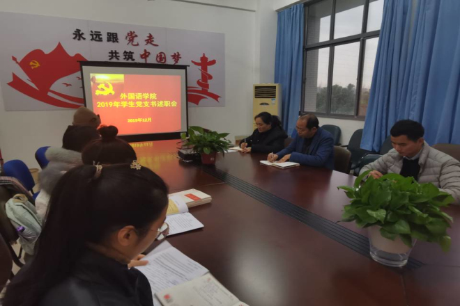 学生党建工作,落实全面从严治党要求,2019年12月18日下午4点,各学生党支部书记在A425会议室组织进行2019年度学生党支部书记工作述职工作会议。党委副书记刘伯贤,分团委书记杨艳,辅导员苗文建出席本次会议。本次会议由党委副书记刘伯贤主持