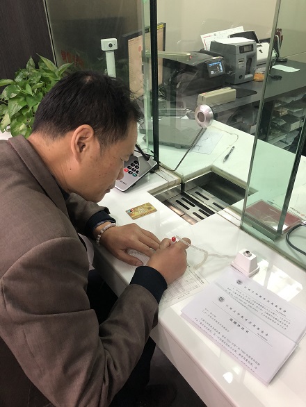 (张小钢老师在银行办理捐款)