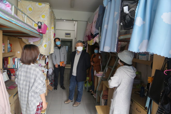 随后,徐校长一行来到澈苑公寓,亲切看望慰问了水果派返校的学生,了解学生返校情况,询问她们返校后的学习计划、毕业打算,激励学生做好近期在校规划和毕业规划,以积极的心态面对疫情阶段的学习生活。