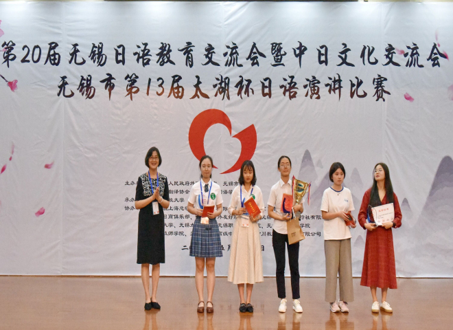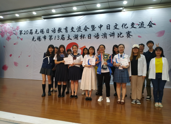 该比赛本次大会由无锡市人民政府外事办公室、无锡市教育局、无锡市翻译协会等联合主办,上海日本国总领事馆、无锡日商俱乐部等单位协办。上午的交流会上,日语系学生陈霄和李欣凝的二重唱“マーリーゴールド”荣获一等奖。下午的比赛中,经过激烈的角逐,水果派