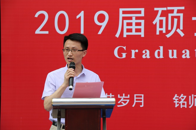 毕业生代表滕兆梅同学回顾了三年学习与研究的不易、收获与感动,她代表全体毕业生表达了对导师、对学院、对学校的感激之情,并承诺他们将带着这份感激与期望奋力拼搏来回馈母校的培养。