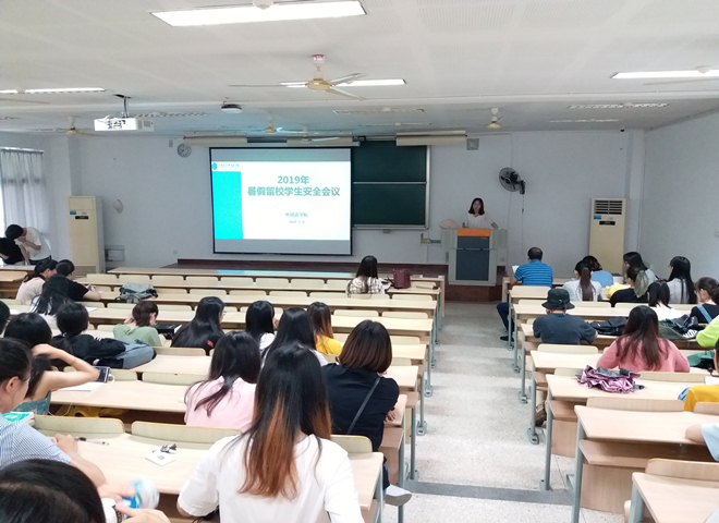 首先,刘伯贤老师强调了假期安全的重要性,明确了学校对暑假留校生的安全管理办法。根据学校对暑假留校生的安排,同时结合外语学院留校生的具体情况,刘老师指出:留校期间的人身安全是第一位的,大家要按照学校、学院的相关要求安排暑假学习生活,在饮食、出行等方面要格外注意。就暑假网络信息安全问题,刘老师结合当前新闻热点事件给同学们进行介绍,并通过身边的真实事件提高大家防诈骗意识以及应对措施。