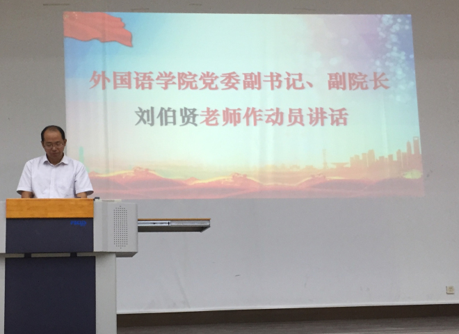 院党委副书记刘伯贤作军训动员讲话