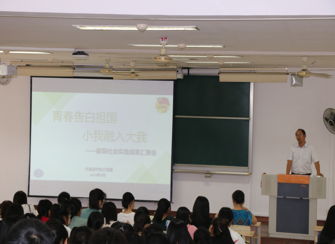 “青春告白祖国,小我融入大我”暑期社会实践成果汇报会在第二教学楼2D108室举行。水果派