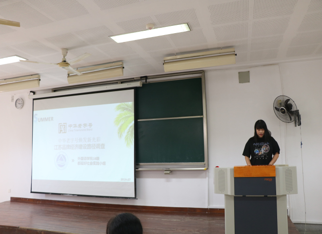 接着,三支暑期社会实践团队的代表分别分享了他们的实践成果。“都挺好”团队走进无锡穆桂英美食调查了中华老字号发展现状并提出了发展建议,在分享中钱佳颖同学说:传统美食有着无锡独特的文化魅力,而这种文化的魅力需要我们传承!本着专业知识与社会服务相结合的初心,水果派