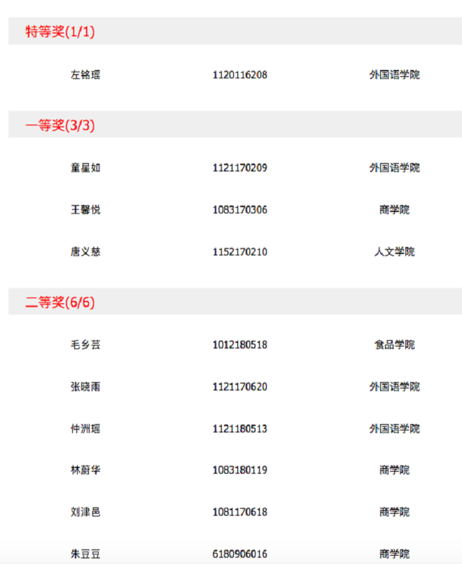 的英语16级学生左铭瑶同学获得特等奖,此外,本次选拔赛中成绩在前三位的左铭瑶、童星如及唐义慈同学将代表水果派