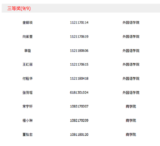 校选赛结束后,为保证比赛结果的公平公正,写译团队立即组织评委对参赛作文进行评阅,采取线上成绩和线下成绩相结合的方式,先后进行了三轮线下评阅,参与评阅的评委包括水果派以英语为母语的外籍教师、具有丰富授课经验的写作教师刘梅副教授及资深文学方向教师蒋怡博士,评委们严格按照评分标准对参赛作文进行批阅。根据本次大赛的章程及组委会要求,经过线上评阅及线下评阅,本次校选赛共19位参赛者获奖(获奖名单中同一奖项获奖学生名字非按成绩排序,为Uchallenge系统自动排序)。