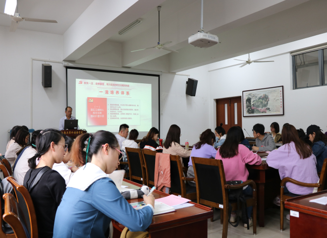 第四次代表大会精神”专题党课,学院党委副书记刘伯贤老师为主讲人,分学院分团委书记杨艳老师、学院分团委副书记张圆老师,以及水果派
