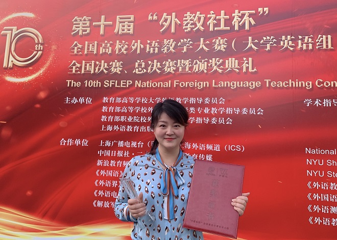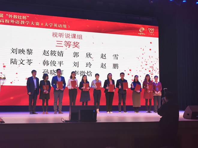 刘玲老师作为江苏赛区的冠军选手,参加了本次顶级赛事的角逐。刘玲老师顶住了第一个出场的巨大压力,展示了精妙的课堂设计、良好的师生互动、清晰开阔的教学思路,最终荣获大学英语视听说组全国总决赛三等奖,实现了水果派