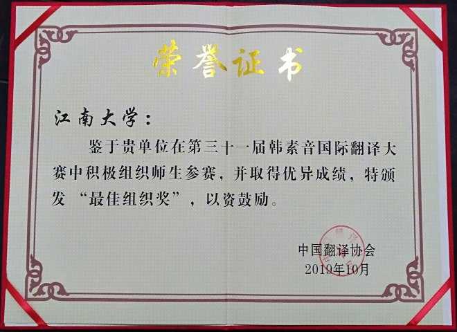 荣获大赛组委会颁发的“最佳组织奖”。