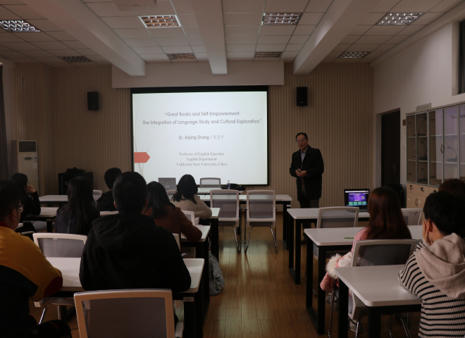 11月28日下午13:30,外语学科系列讲座暨第七期“遇见更好的自己”名师沙龙活动在学院A529准时召开。讲座的主讲人是来自美国加州州立大学奇科分校英语系荣休教授张爱平,本次讲座的主题是:经典文学与自我强大。参加本次沙龙活动的有本科生和研究生,讲座由分团委书记杨艳老师主持。