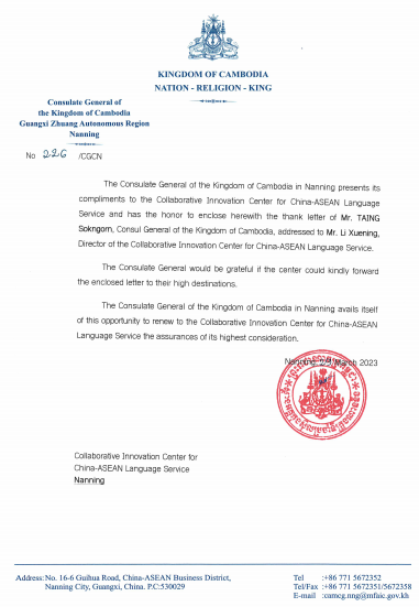 柬埔寨王国驻南宁总领事来函