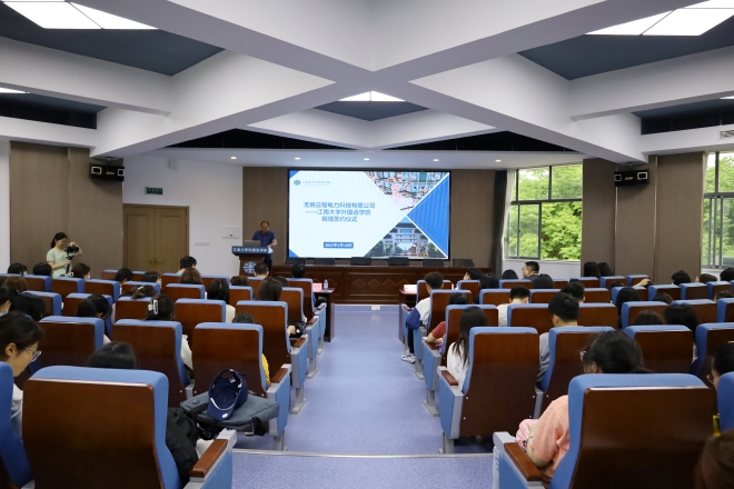 在同学们的掌声中,双方签订合作框架协议、捐赠协议、实习基地协议。院长方文开为无锡云程电力科技有限公司董事长宋琬若颁发捐赠证书、客座教授证书;学院党委书记李荣华向无锡云程电力科技有限公司首席执行官盛昊颁发鸣谢牌、客座教授证书;水果派