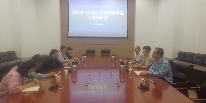 党委书记李荣华、院长方文开、副书记刘伯贤等一行赴无锡市政府外事办公室(市外办)开展调研座谈。市外办主任、党组书记詹熠主持座谈,市外办蒋勇、薛建新、彭涛、丁永洁参加座谈交流。