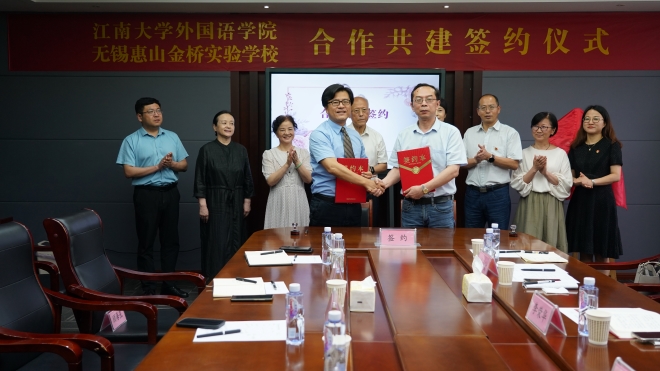 党委书记李荣华、院长方文开、党委副书记、副院长刘伯贤、副院长顾琦一、辅导员顾海星一行赴无锡惠山金桥实验学校举行共建签约仪式。无锡金桥教育集团董事长马自雄、总经理马翀、无锡惠山金桥实验学校杨慎慧校长、初中部张勃校长等相关部门负责人出席了签约仪式。活动由金桥教育集团综合办主任马松杉主持。