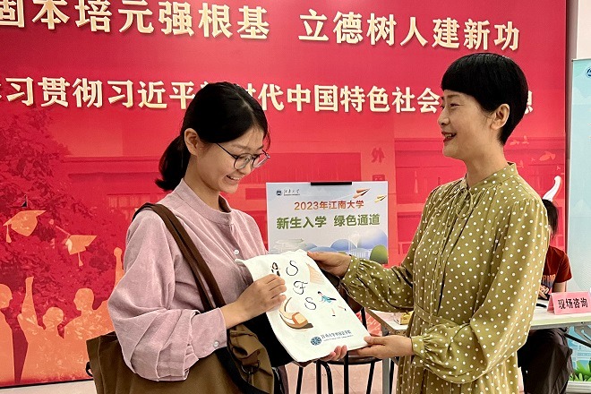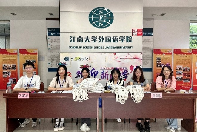 本次迎新主题为:“译”丝期待,共“语”江南。学院大厅同时设置四条新生报到通道以及一条绿色通道,楼前摆放签名墙、优秀学子风采展、外院学子升学榜等。除此之外,学院精心准备定制帆布袋,编纂印制《水果派