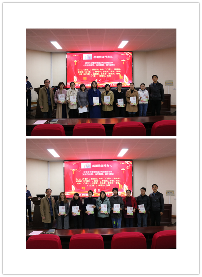 “师德建设月”主题活动,史志洪、方文开同时为获得2020年度学生评教学院前5%的16位老师颁发了感谢信,以此激励全院教师不忘教育初心、牢记育人使命。