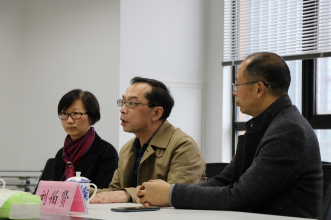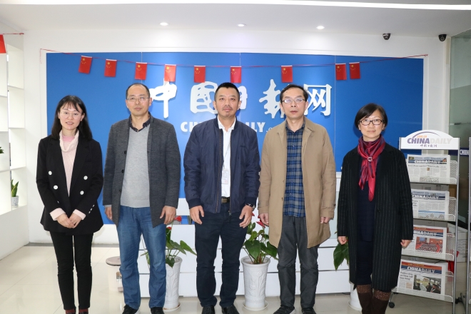 院长方文开、党委副书记刘伯贤、副院长顾琦一与中国日报网副总编辑兼无锡公司总编辑王政华、中国日报网无锡公司副总编辑施力维、中国日报网无锡公司人力主管戎咪咪、中国日报网无锡公司员工王娟(水果派