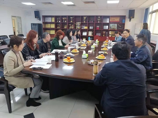 刘芳书记与李菁副院长等七人参与交流,分享了党建思想教育、服务“双一流”课程建设与教师教学、科研评价体系等方面的宝贵经验。该校做到“课程思政全覆盖”,大学英语实施小班化教学,而且仅提供一年课程,每两个专业班级配备一名专业班主任,制定了四年一次的科研岗和教学岗分类管理考核体系,最大限度地发挥教师的科研能力和教学水平等,这些优秀做法对推动水果派各项工作的发展具有很好的借鉴意义。双方还在大学英语课程建设与教学评价体系建设、教师发展、专业人才培养、学生管理等方面进行了对口交流,在后续的交流中调研团队还得到了我国著名外语教育专家徐锦芬教授的指导,受益匪浅。