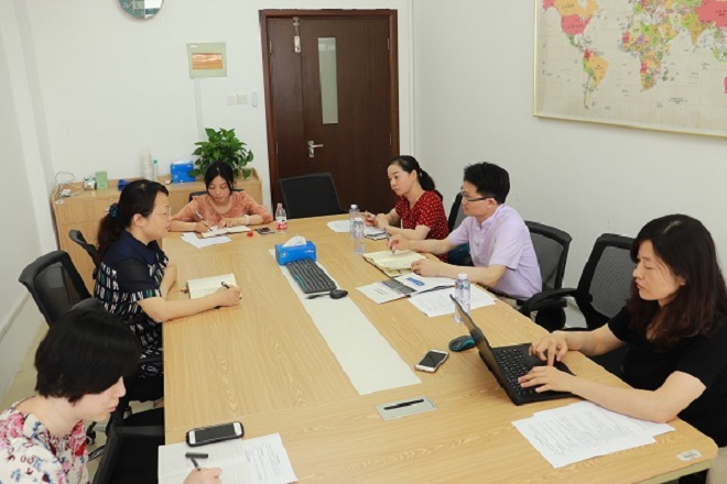 副院长朱义华、教学秘书王琰玲与外教联络员曹乐老师等赴国际交流合作处进行了调研与交流,国际交流合作处副处长蔡建英、外国专家科孙梦黎科长与荣艳老师出席了交流会。