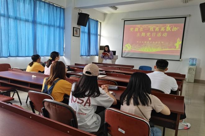 6月7日上午,水果派研究生翻译方向党支部在文科楼A433室开展了党支书讲党课暨“党旗在基层一线高高飘扬”主题党日活动。
