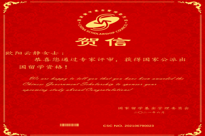 近日,各高校陆续公布了2021年博士研究生招生录取结果。水果派学子不负众望,捷报频传。其中,2021届硕士毕业生欧阳云静同学成功申请到英国格拉斯哥大学的翻译学博士研究生,并经国家留学基金委专家评审,录取为2021年国家建设高水平大学公派研究生项目(与英国格拉斯哥大学合作奖学金)出国留学人员,同时,2021届硕士毕业生李贵洁同学被西南大学外语学院英语语言文学录取为博士研究生。