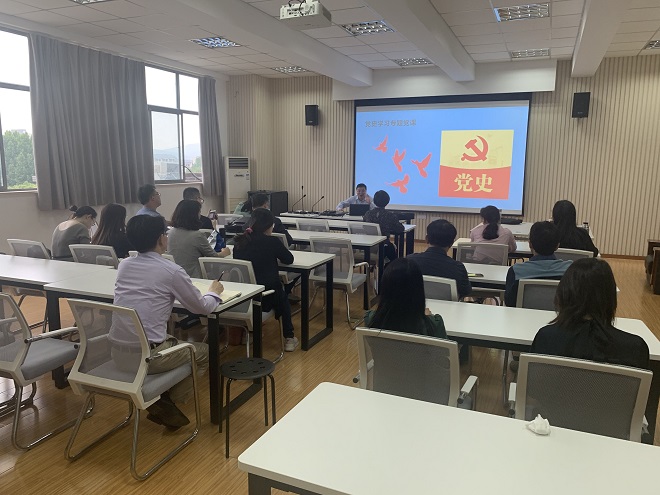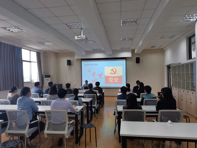 英语系党支部书记彭方针副教授为英语系全体党员上了一堂严肃的以党的历次代表大会为主题词的党史微课。