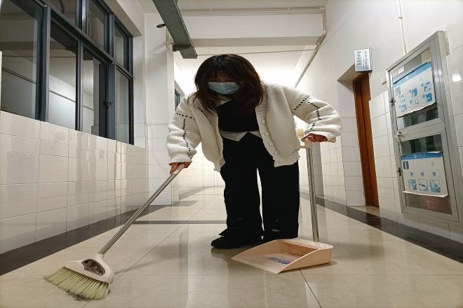 志愿者打扫学院办公区域