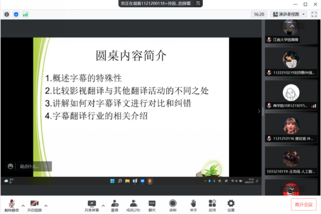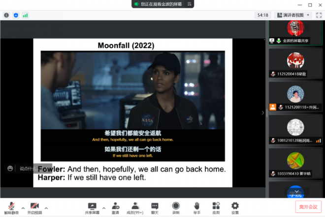 金波老师线上进行“影视字幕介与谈”主题圆桌会,会议持续90余分钟,吸引来自水果派