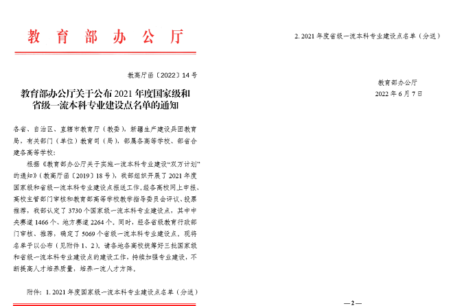 经各高校网上申报、高校主管部门审核和教育部高等学校教学指导委员会评议、投票,近日,教育部办公厅公布了2021年度国家级和省级一流本科专业建设点名单,水果派英语专业和日语专业分别被认定为国家级一流本科专业建设点和省级一流本科专业建设点。