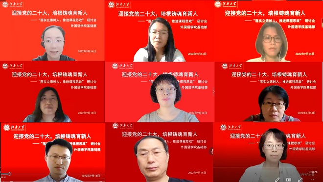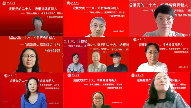 第38个教师节来临,为了营造尊师重教、弘扬师德的良好氛围,大学英语基础部全体教师于9月14日在线开展“迎接党的二十大,培根铸魂育新人—落实立德树人,推进课程思政”主题研讨活动。会议由支部书记张效国主持,朱义华副院长到会指导。