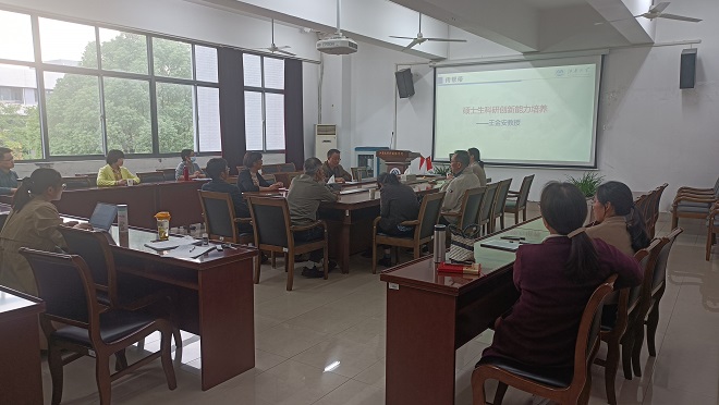 研究生导师管理办法》,同时传达了研究生院例会精神、要求以及研究生教育工作的发展趋势。老师们认真聆听培训内容,领会文件精神。文件学习后,由学院王金安教授做了一场题为《硕士生科研创新能力培养》报告,王教授在硕士培养方面经验丰富、培养了一批高端人才。王教授主要介绍了他培养硕士研究生的教育理念和具体做法。王教授表示,作为导师,首先要做好硕士研究生的第一责任人,要做学生的良师益友,关注学生的生活,爱护学生,关心学生,并分享了如何引导学生读好书、如何引导研究生摆正心态、如何激发学生科研积极性、如何培养研究生的研究方法、如何提高研究生的写作水平等的具体做法。王教授强调慢工出细活,既要苦干、也要巧干。最后,王金安教授分享了指导学生考博的经验体会,得到了与会导师们的高度认可。随后,导师们就文件和讲座内容进行了学习心得的交流:要进一步践行文件精神,认真做好导师工作;王金安教授能够培养出多位应届生考上博士是默默付出、静心读书、共同成长的水到渠成的结果,很多经验和做法值得学习与实践。