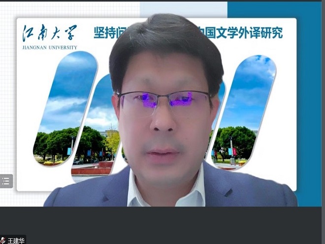 社科处处长王建华教授致辞,他简要介绍了刘云虹教授的学术背景,并对疫情防控紧急状态下仍支持学校工作的各位与会专家表示感谢;王处长在肯定本年度学术研究成果的同时,对新一年的学术研究提出了殷切期望,他还鼓励与会同学认真聆听讲座内容,结合专业达到融会贯通的效果。