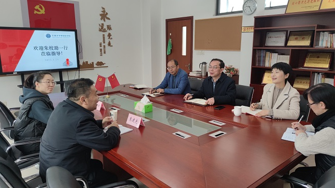 办学特色和学科融合进行了深入交流。他希望用好调查研究的“传家宝”,深入了解困难,加强多方交流和资源拓展,进一步推动学院新发展。