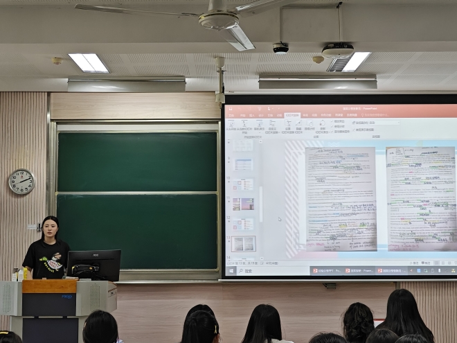保研国奖分享会在2c210教室举行。分享会邀请张新月、杨晓当、刘大宁、高子涵、王妙然五位获得国奖、保研的优秀学子进行经验分享,学院23级、22级学生参加本次分享会。