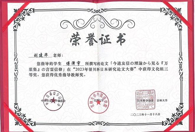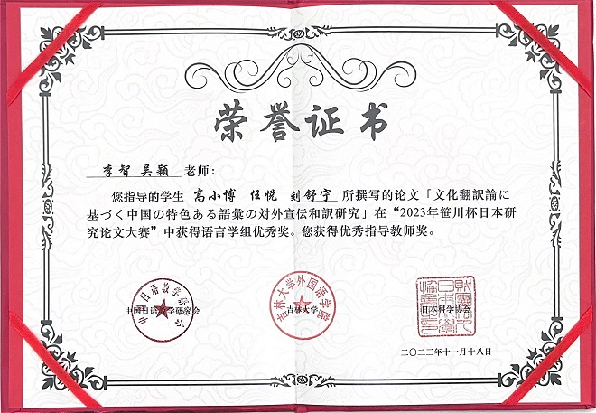 组三等奖,21级学生高小博、任悦、刘舒宁三位同学获得语言组优秀奖。日语系刘建华老师、李智老师、吴颖老师分别荣获“优秀指导教