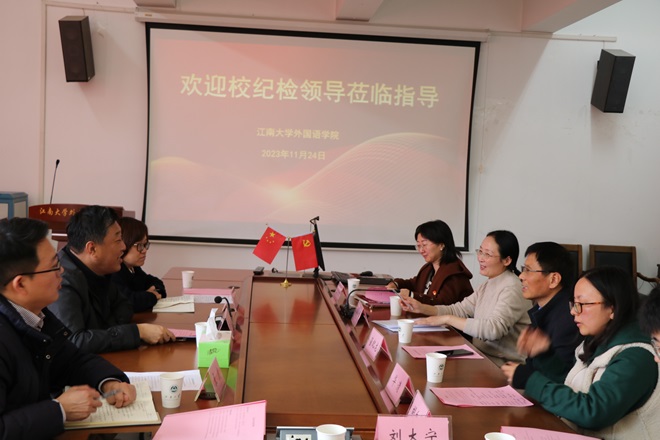 会议伊始,谢竞贤简要汇报学院开展纪检工作情况。她介绍了学院坚持从制度建设先行、风险梳理常做、师德教育常抓三个方面重点推进全面从严治党,在师生当中形成廉洁从政、廉洁从教的良好风貌;提出了师生反映较为集中的师资队伍建设、大外教学改革和办公环境改善等相关问题,反馈了委员们在落实全面从严治党监督责任面临的难点问题。随后,参会人员就实际工作中的问题进行了交流讨论。姜辰娟、管纪龙、华清代表教师党员就支部建设、学院建设、教师情况与任务分配等方面交流了实际困难;学生支委代表胡自威、刘大宁则就学生工作与对学院的展望反馈了问题。