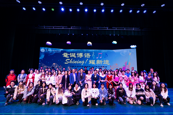 配音《小时代之顾里生日会》开启了第三篇章:鼋旦华梦向未来。歌曲弹唱《Wonderful U》带着淡淡的忧伤,感染了整个会场;由聂楠、李佳潼等人带来的韩舞《Kitsch》充满了自由自在、无拘无束的激情,舞姿优美动人;新生副班主任带来朗诵《“译”江南》,一字一句彰显了外语人的担当,表达了对江南的热爱。最后,晚会在大合唱《灯火里的中国》中圆满落幕。