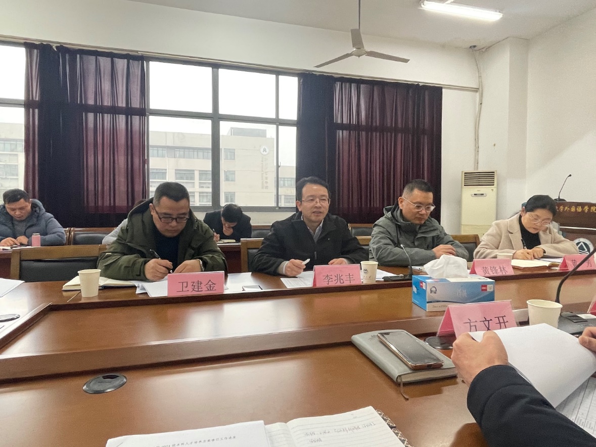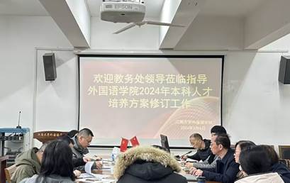 会上,方文开院长基于前期广泛调研的成果,围绕修订工作的核心内容进行报告,强调了利用长三角经济发达地区资源优势,突出学校人才培养特色,积极应对科技挑战,着力英语专业、日语专业和大学英语公共基础课的特色发展。顾琦一副院长针对学科布局和专业发展汇报了具体设想,介绍了基于国家政策、学校特色和学生需求的专业方案和大学英语课程体系与修读模式方案。参会人员针对修订工作中遇到的疑惑和困难进行了深入交流和研讨。教务处李兆丰处长强调了本科人才培养方案修订工作的重要性,提出跨学科和跨学院课程设置的规划和选课方案,鼓励教学改革与教学创新,强调课程质量的“两性一度”要求,同时充分肯定了水果派