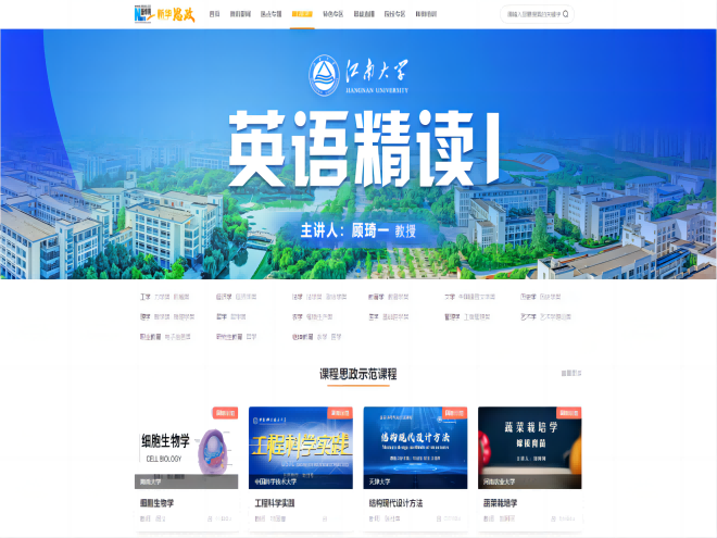 课程思政示范课程。课程运用“4C阅读模式”推动学生从文本理解(Read to Comprehend)、批判思维(Read to Critique),到强化巩固(Read to Consolidate)、创新实践(Read to Create)层层推进,提升学生高阶思维能力和创新实践能力,增强了学生“理解中国、沟通世界”的英语综合素养。