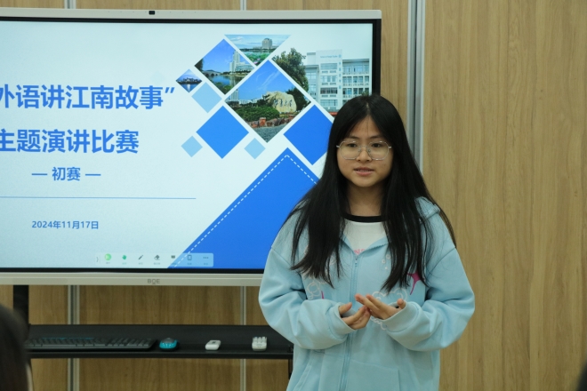 面向全校同学组织开展“用外语讲江南故事”主题演讲比赛。经过前期报名,初赛评选,共有32名选手进入决赛环节,决赛于11月24日在南区“一站式”学生活动中心举行。